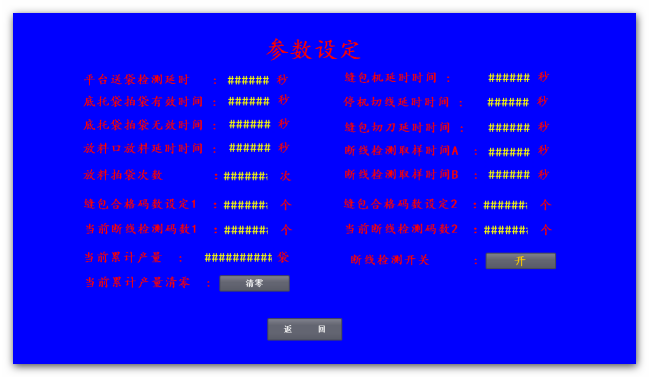 10、縫包切刀延時(shí)時(shí)間是切刀執(zhí)行一個(gè)動(dòng)作的時(shí)間,一般設(shè)為0.3秒。