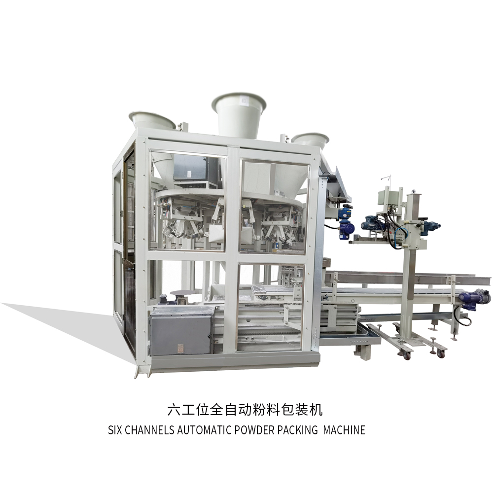 六工位全自動(dòng)包裝機(jī)小時(shí)產(chǎn)能可做到720包,單臺(tái)設(shè)備可滿足單線年加工20~30萬噸的企業(yè)使用,如產(chǎn)能超過60萬噸以上可選擇兩套六工位全自動(dòng)包裝機(jī)外加一套噸袋包裝機(jī)即可,但具體設(shè)備選型還需根據(jù)使用方具體情況進(jìn)行合理選擇。
